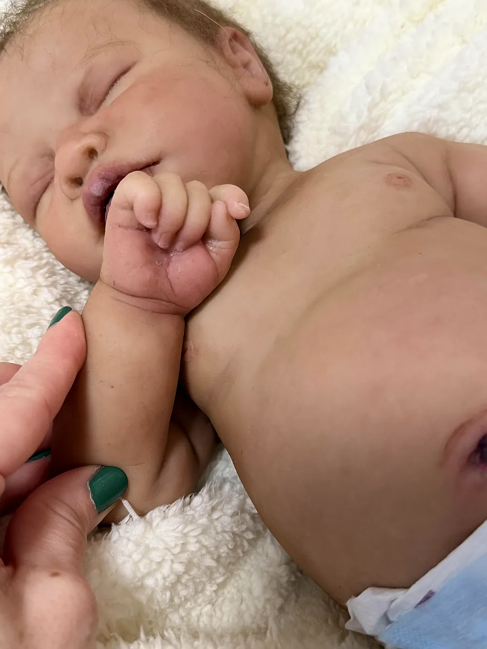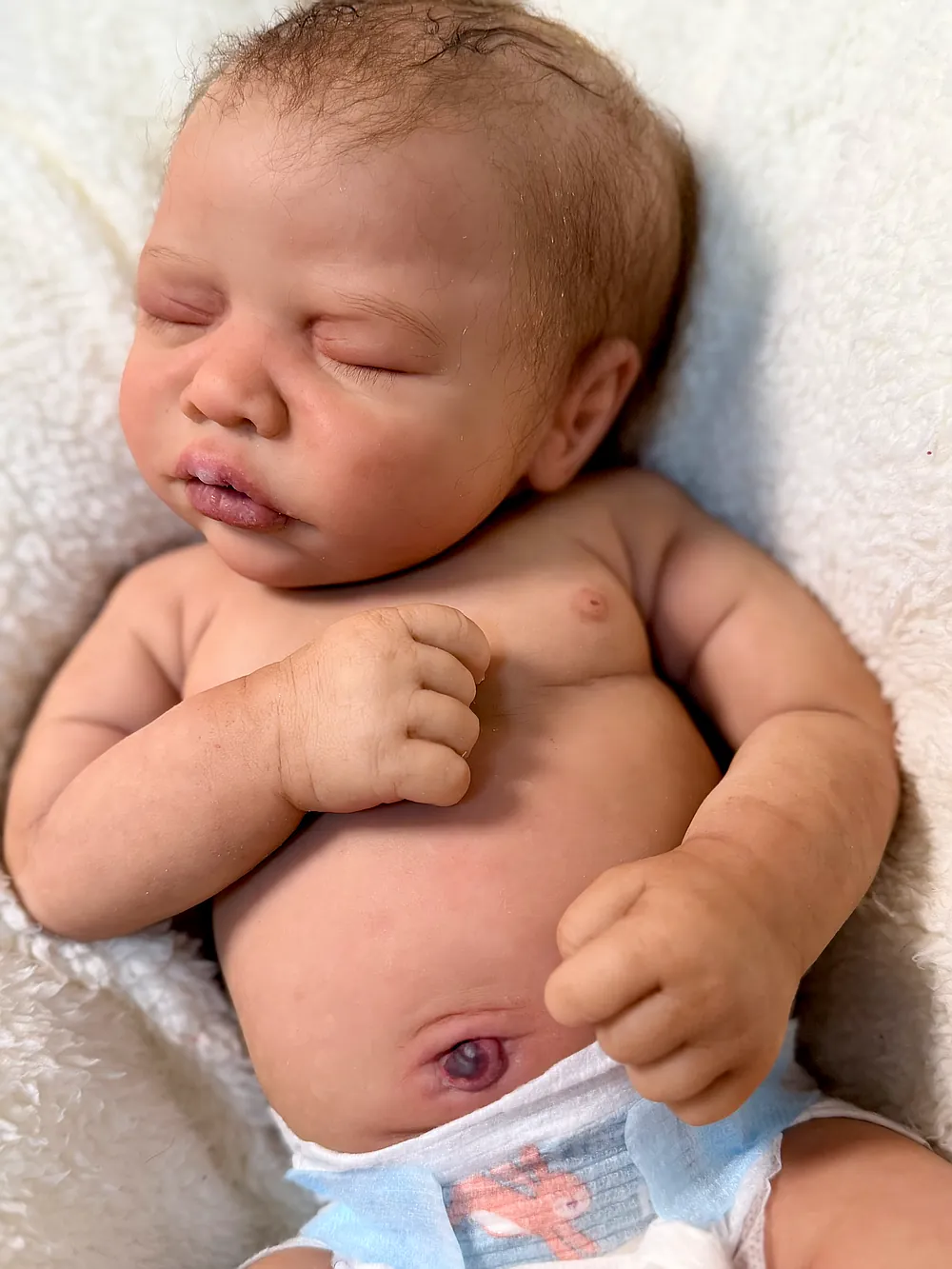 Neeley was sculpted by Denae Culbreth and Kathy Romero Biscuiti, and lovingly painted and rooted by me😊 His hands are life cast from a 2 week old baby which adds to his cuteness and realism.