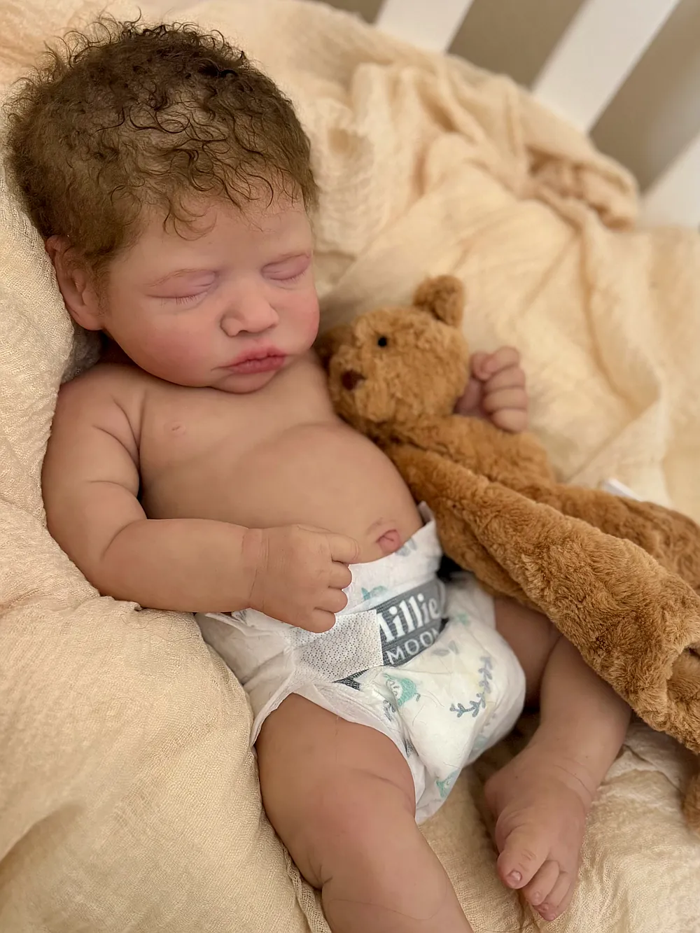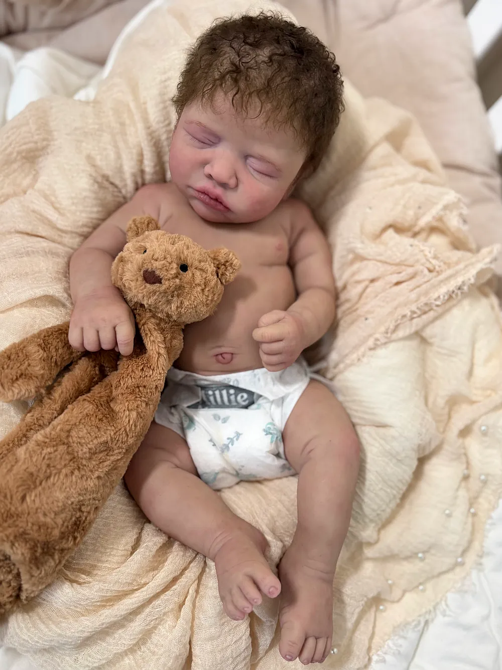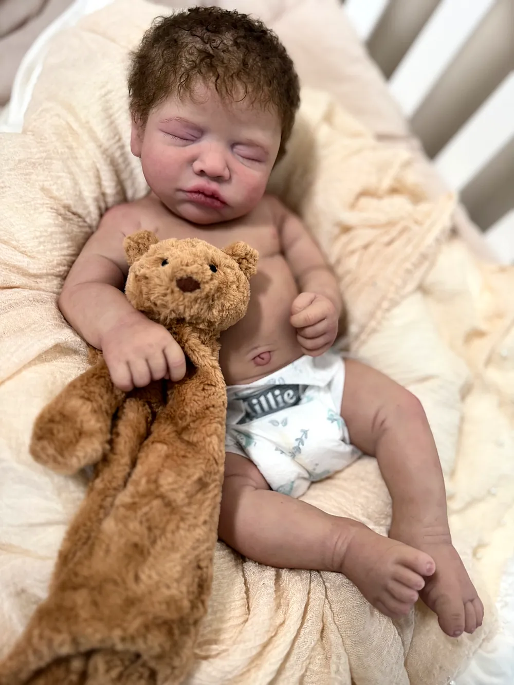 Neeley is one of my very favorite sculpts to bring to life! He is absolutely precious! This little guy has turned out just as I hoped, and I’m so in love with him. Neeley was sculpted by Denae Culbreth and Kathy Romero Biscuiti, and lovingly painted and rooted by me😊 His hands are life cast from a 2 week old baby which adds to his cuteness and realism.