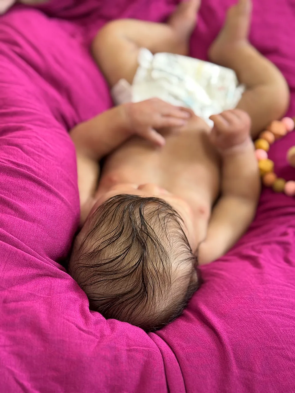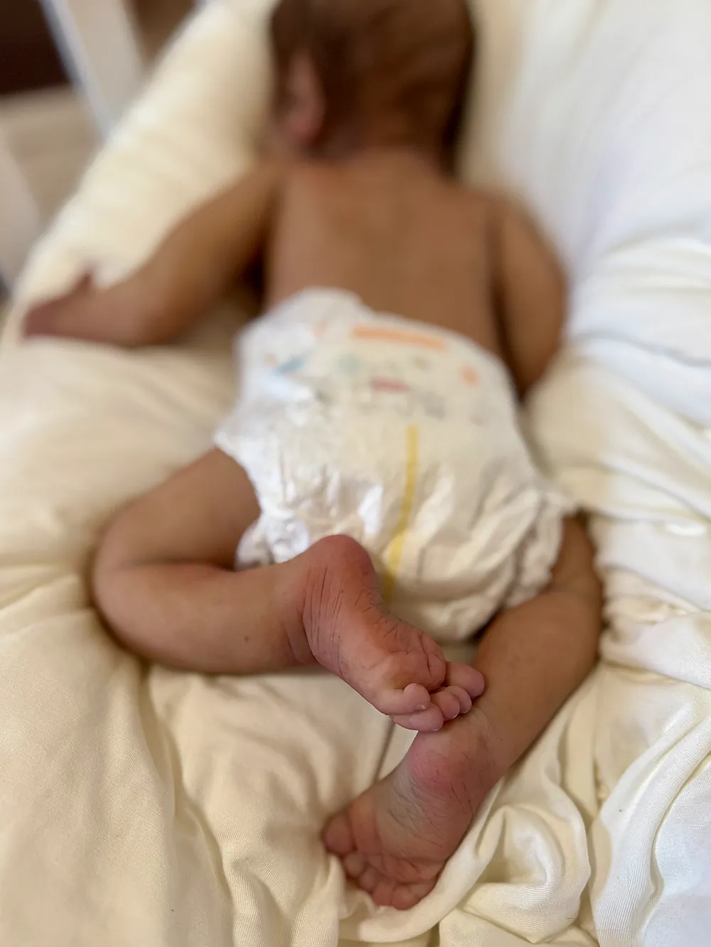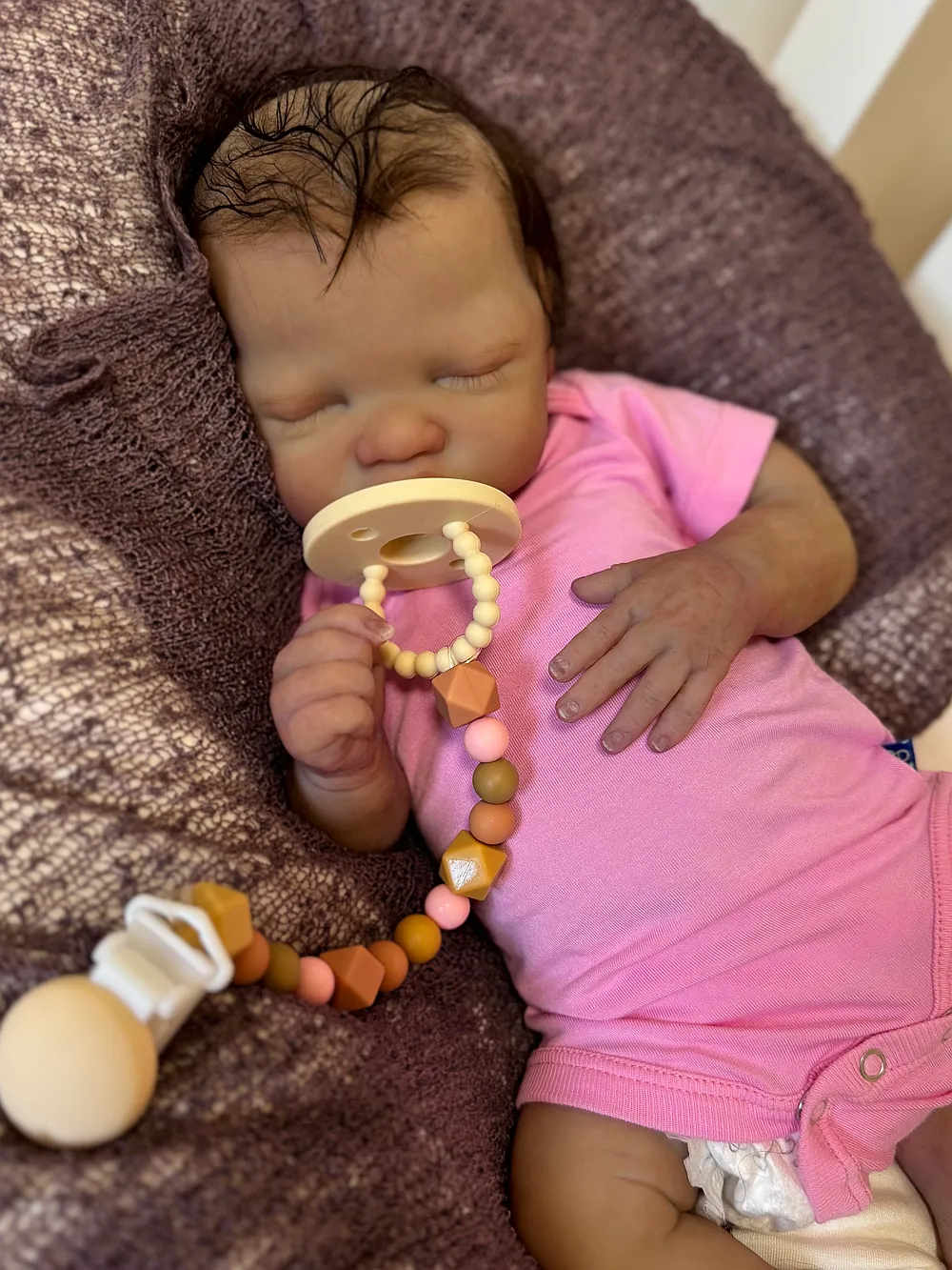 Olive is very soft and feels just like a real baby when you hold her. She can wear preemie-sized clothes and diapers and takes a preemie-sized pacifier that will come with her. She was truly a joy to paint, and I hope that comes through in my work.